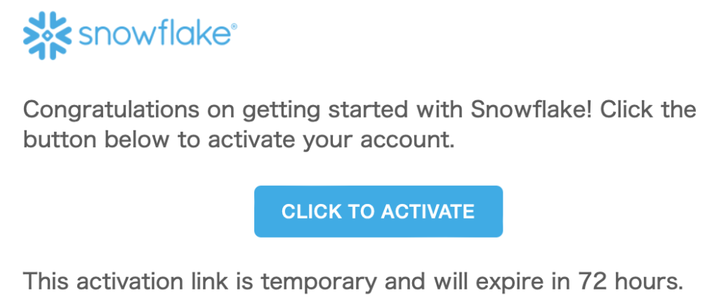 程なくしてSnowflake社からメールが届くので「CLICK TO ACTIVATE」ボタンを押下する。